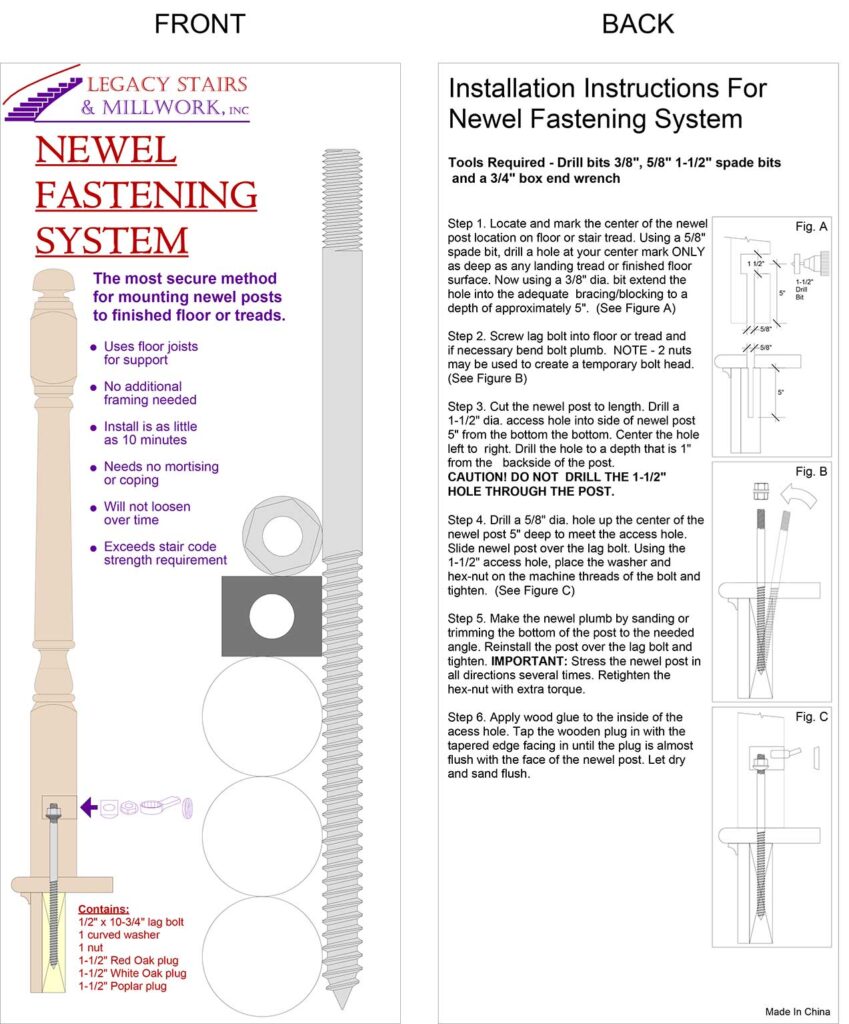 - The most secure method for mounting newel post to finished floor or treads
