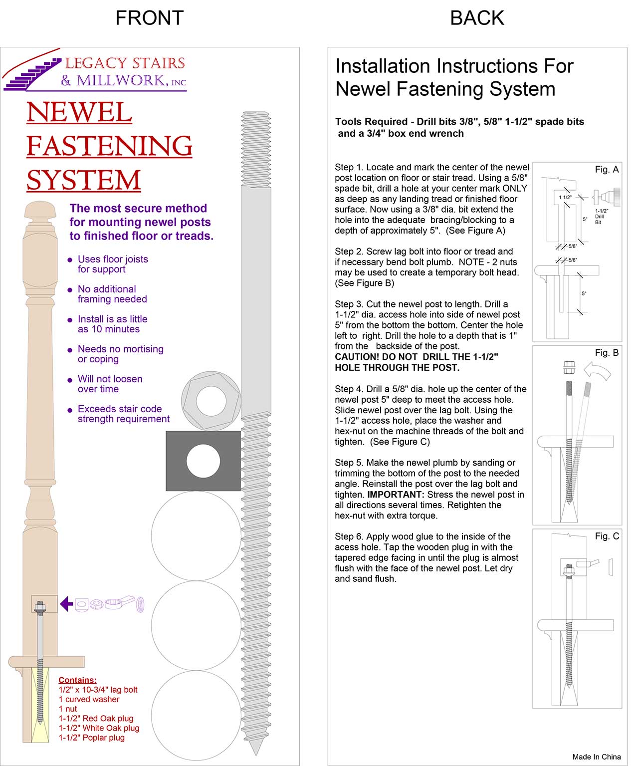 - Includes 3 wood plugs, (Red Oak, White Oak, and Poplar)